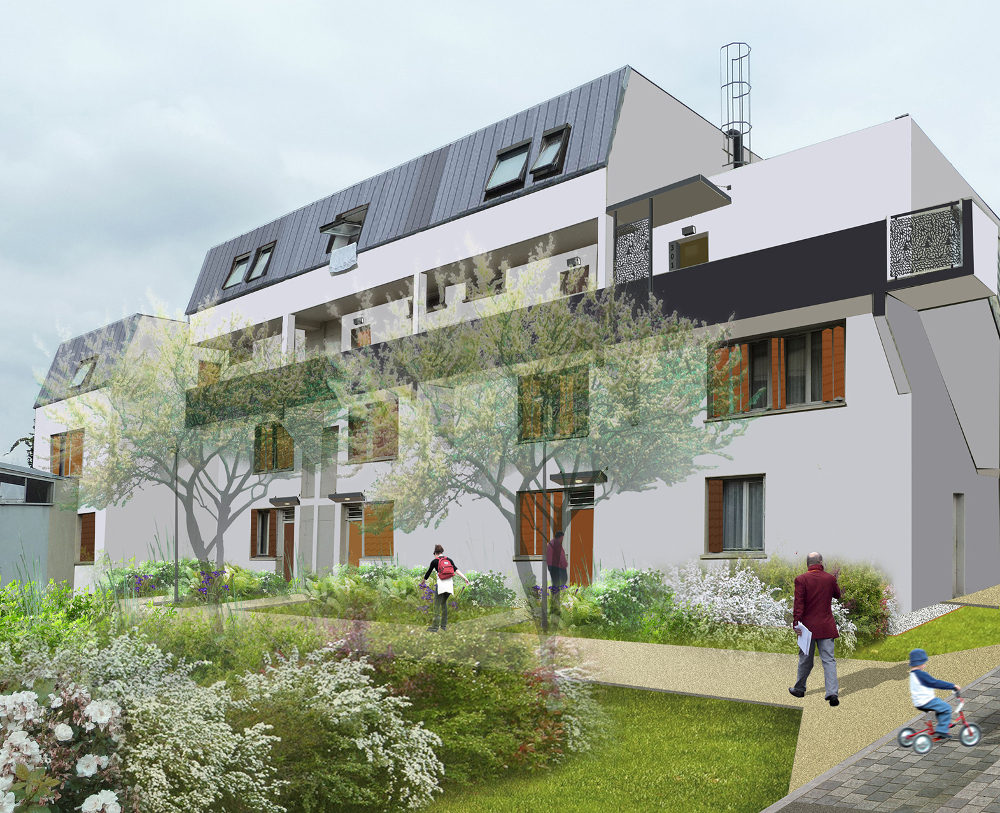 – Création de 4 halls, de locaux vélos et d’un local entreprise rue Utrillo.